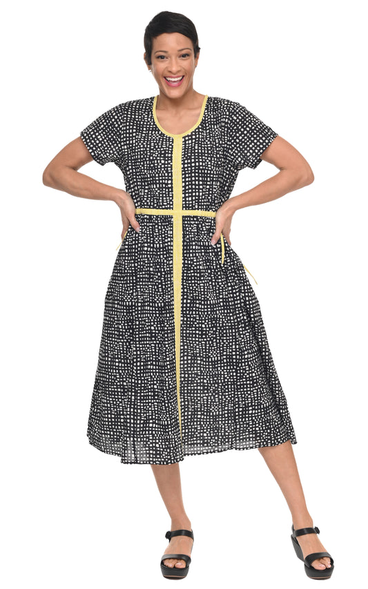FINAL SALE CV1167 Fulton Dress in Black Dots/Gold Check*