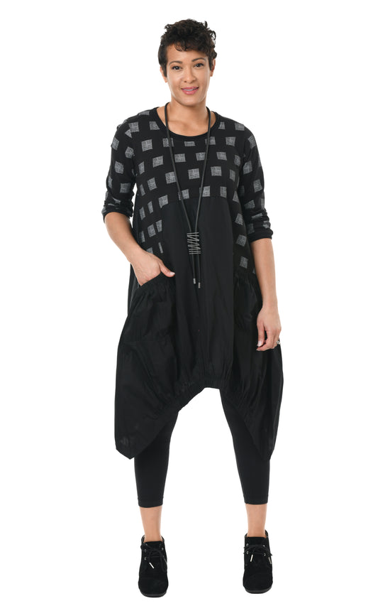FINAL SALE SDM641 Adele Dress in Black Gray Mini Chex*