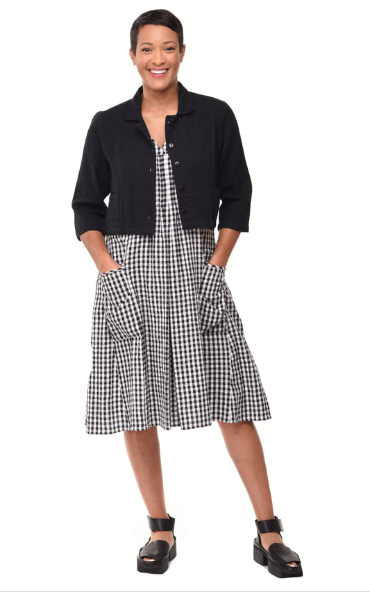 FINAL SALE SDM641 Adele Dress in Black Gray Mini Chex*