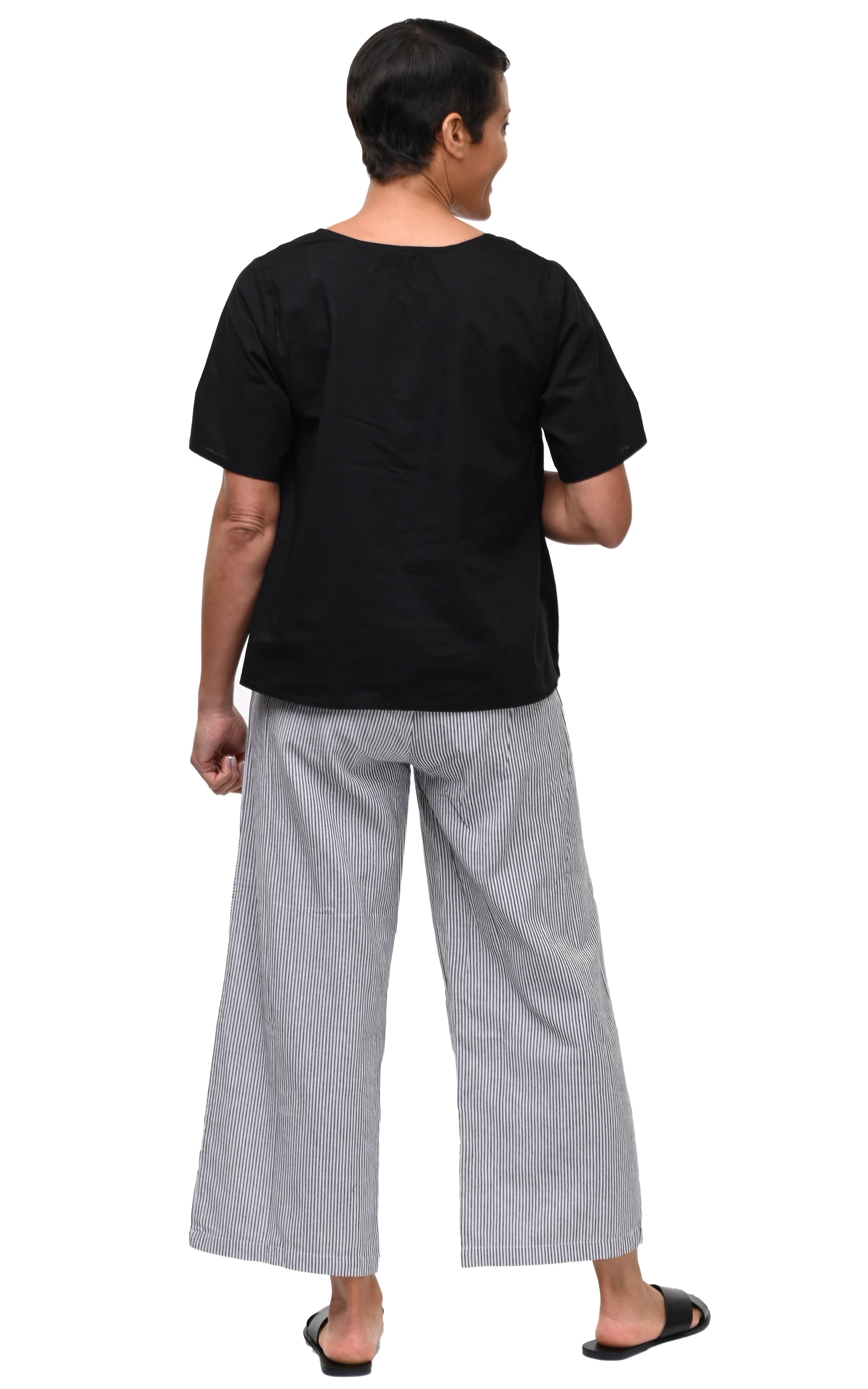 The Carmella Pullover is your go-to top for everyday ease with a polished twist. Cut from crisp cotton with a soft, natural drape, this minimalist staple features a wide scoop neckline, relaxed short sleeves, and an easy A-line shape that flatters without clinging. It’s the kind of elevated basic that pairs effortlessly with everything from wide-leg pants to cropped skirts. Clean lines, breathable comfort — no fuss, all style.