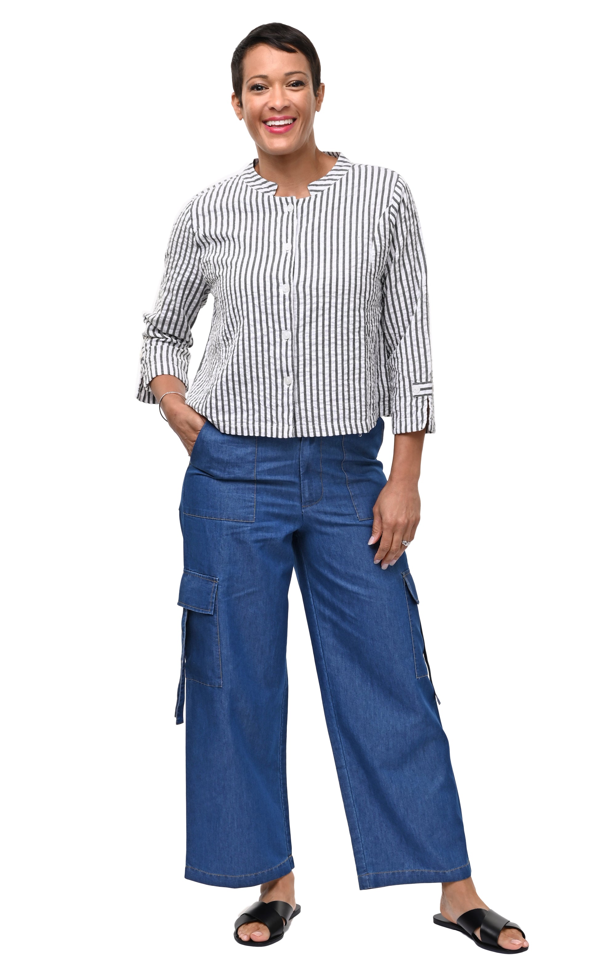 Shown with CV1086 Calista Cargo Pant in Murphy Stripe.