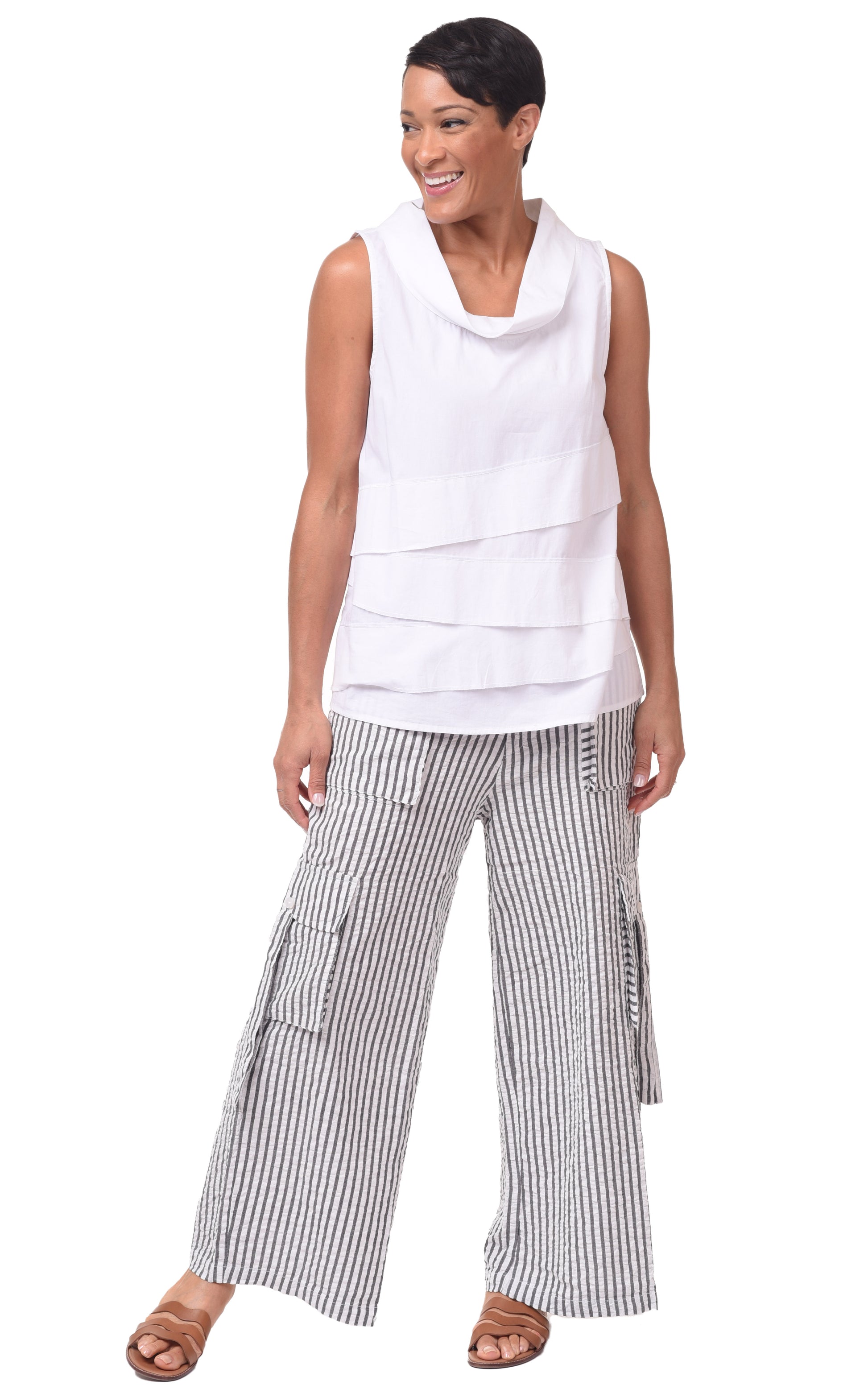 - Outfit 4: Shown with CV1086 Calista Cargo Pant in Murphy Stripe