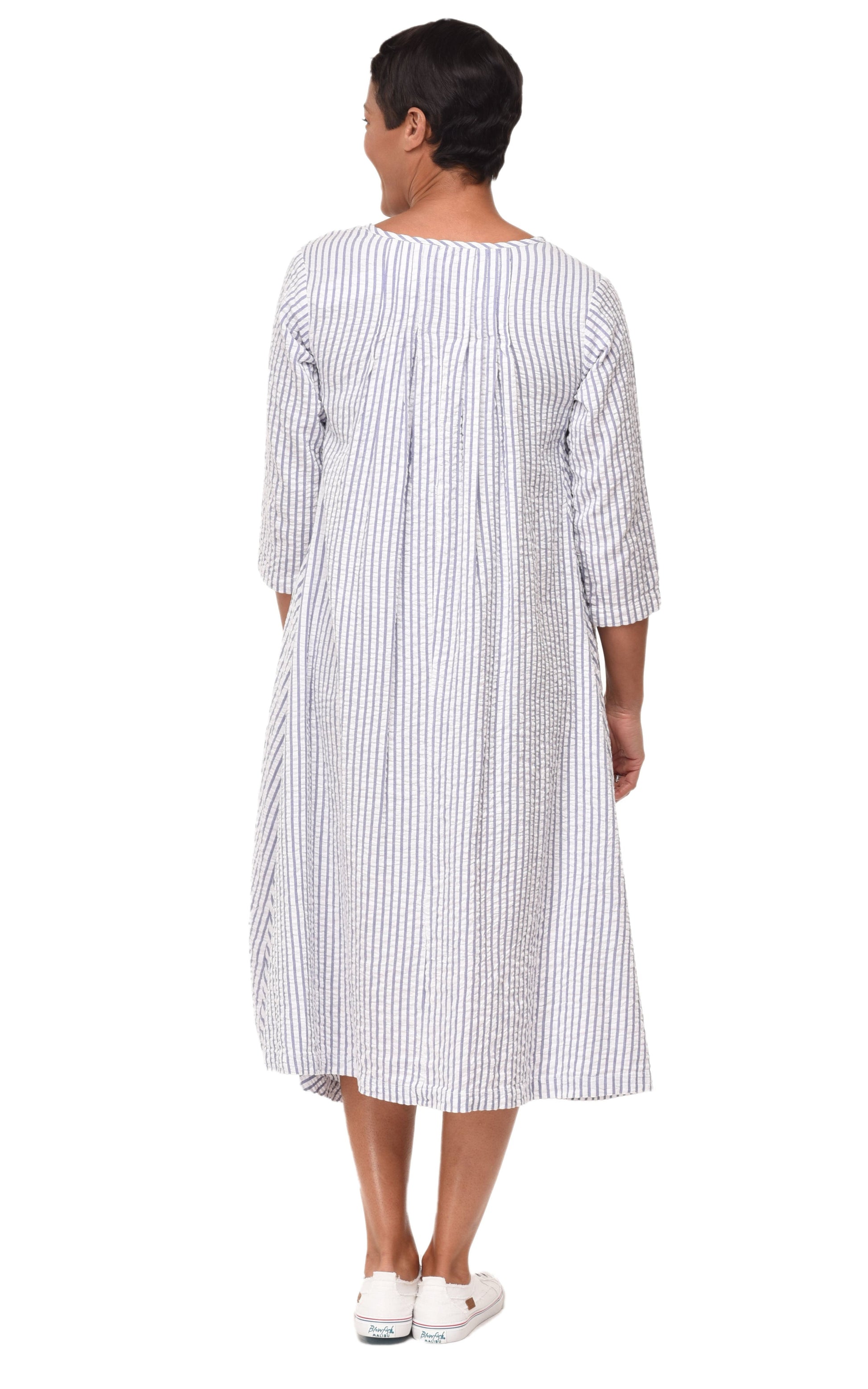 FINAL SALE CV49 Lexi Dress in White Peri Seersucker Stripe*