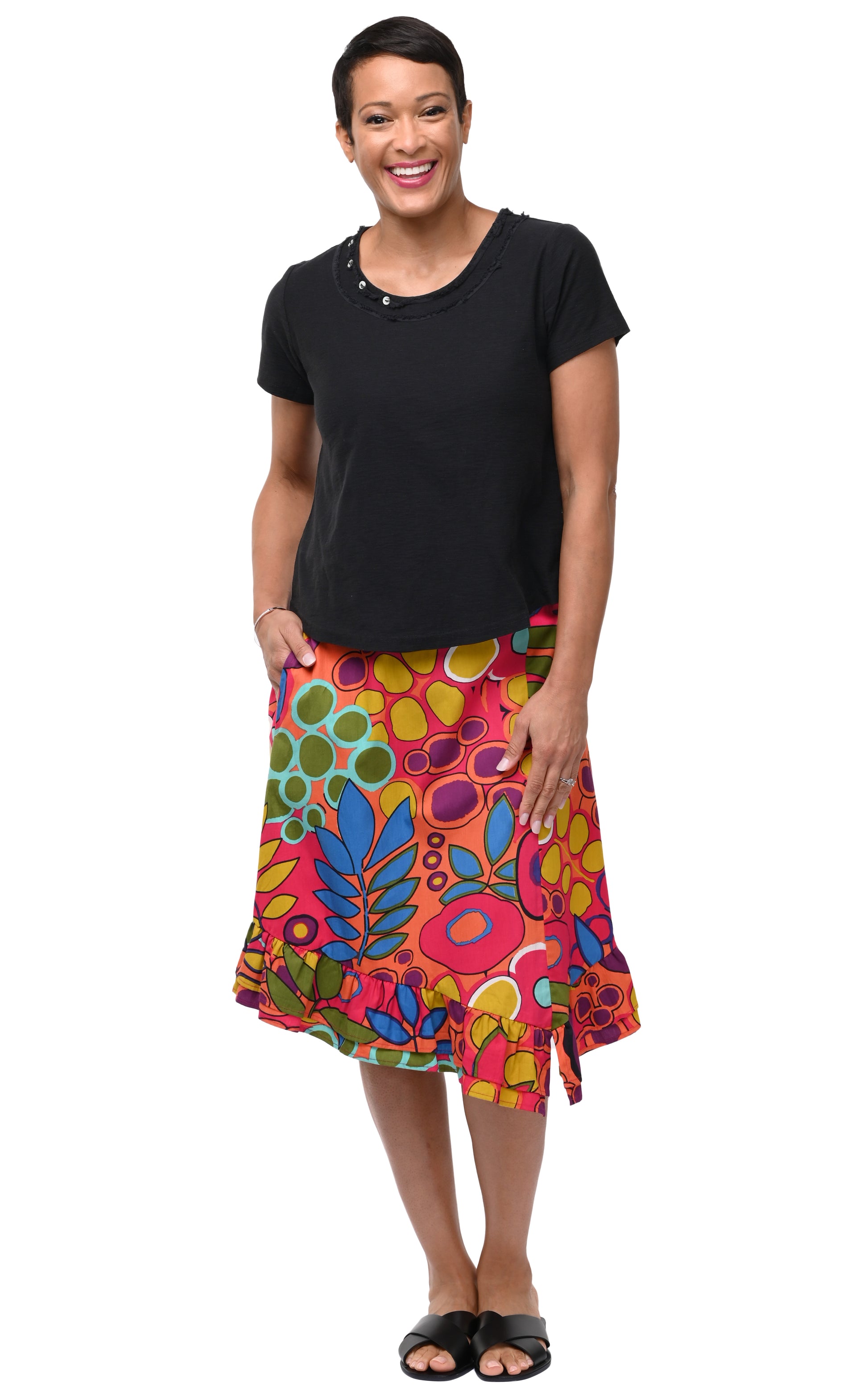 Scoop neck tank featuring a raw edge and button detailing around the neckline.