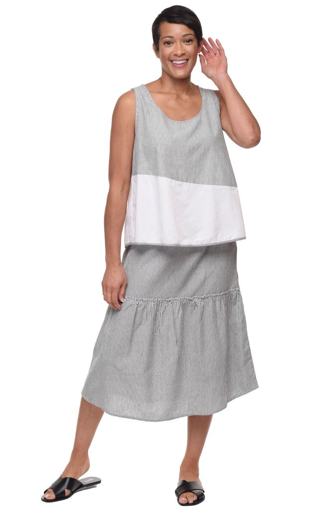 - Outfit 3: Shown with CV1179 Sheldon Skirt in Ticking
