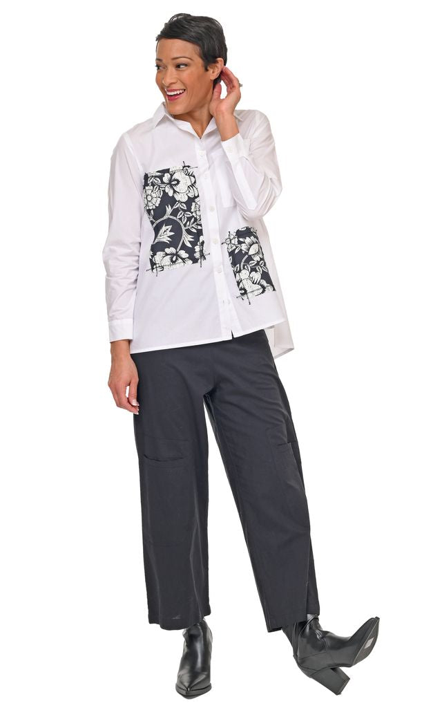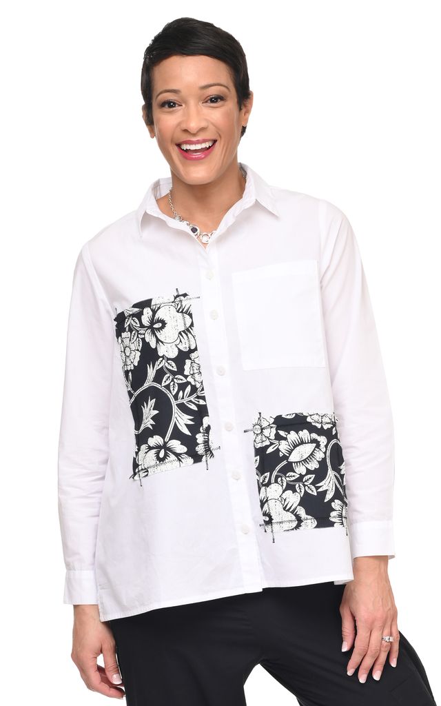 Indulge in luxury with the Hadley Blouse. This elegant button-down blouse features intricately printed decorative patches and delicate overlock stitching for added detail. Complete with a front chest pocket and back pleat, this blouse exudes sophistication and exclusivity.