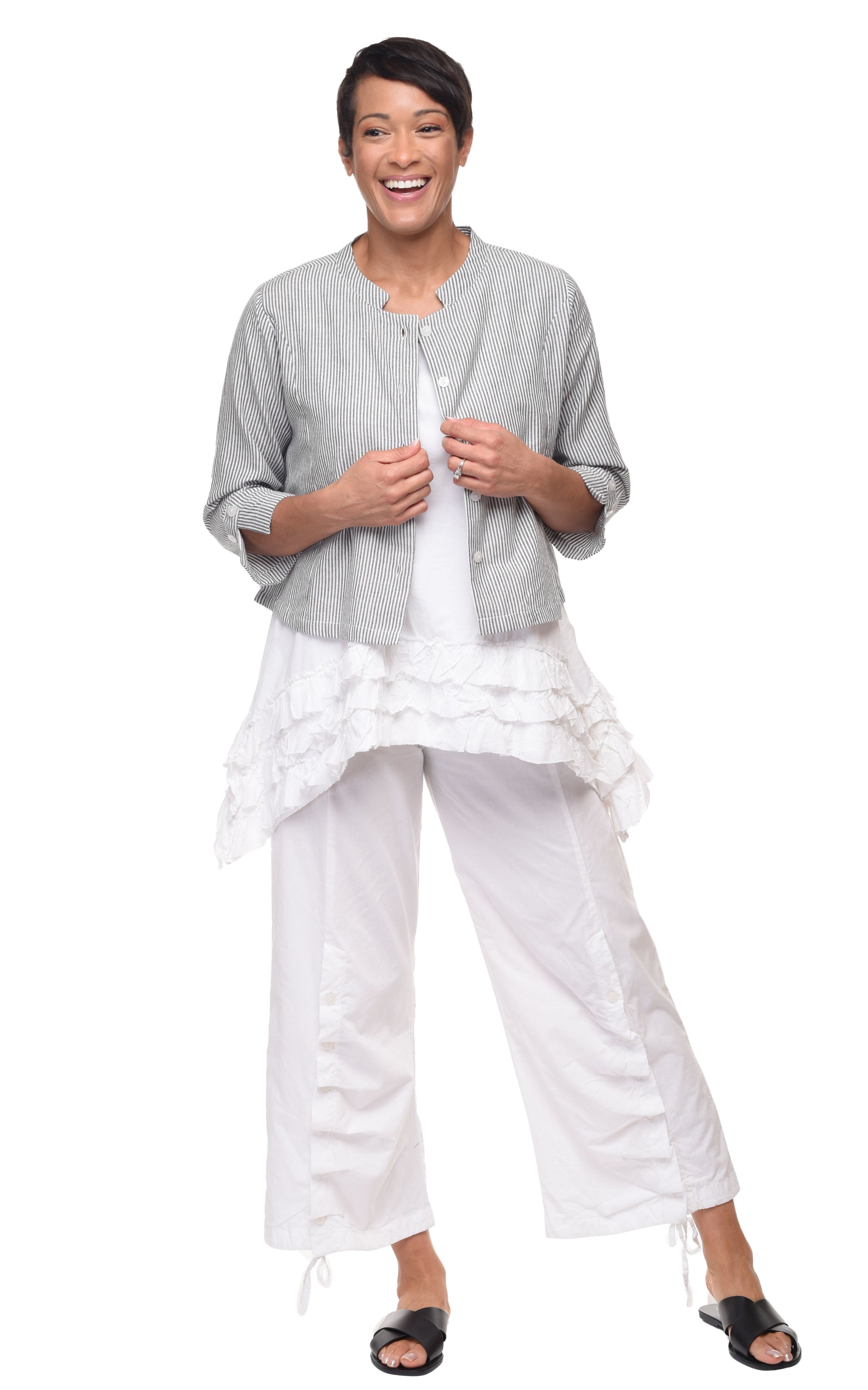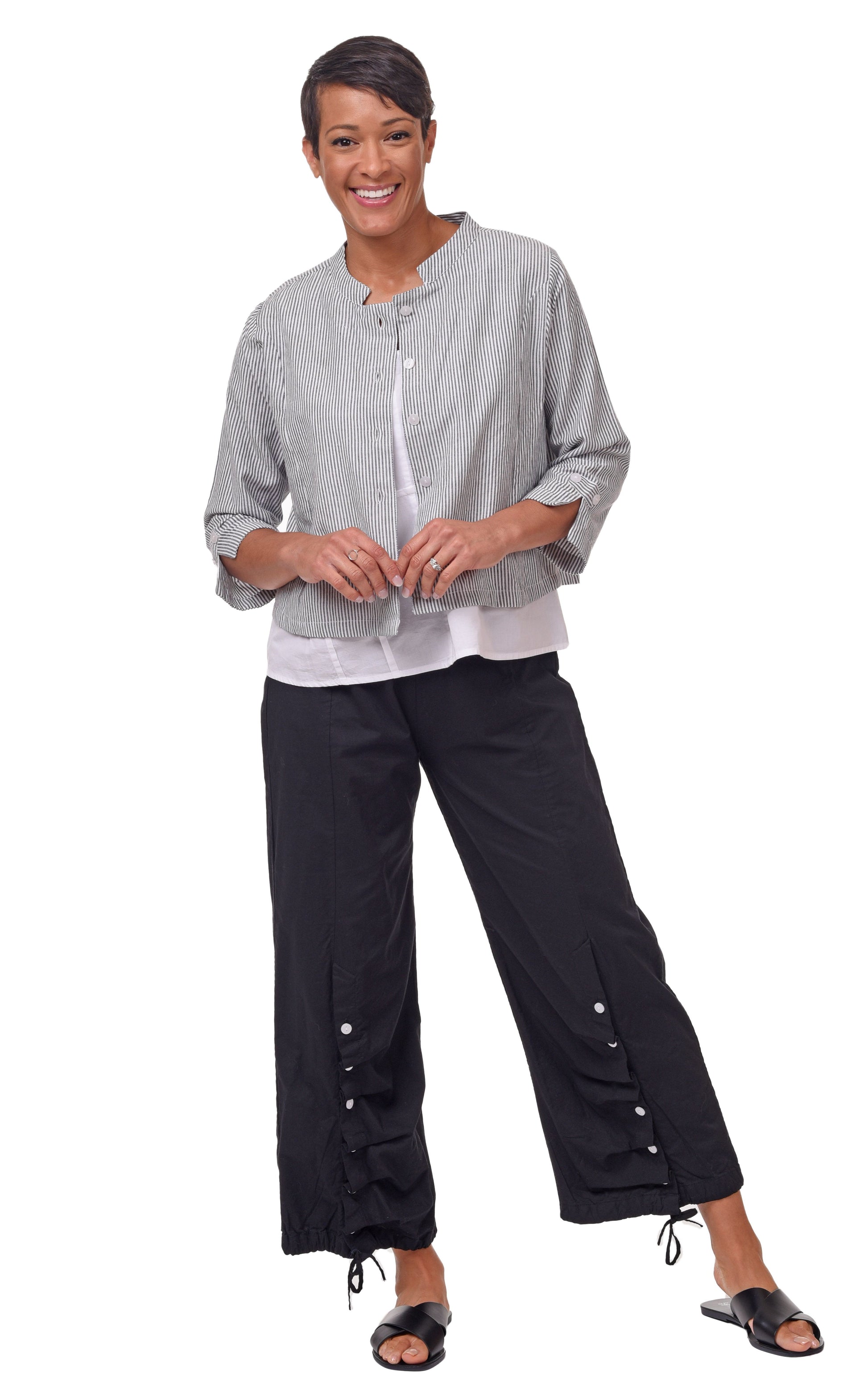 - Outfit 4: Shown with CV1086 Calista Cargo Pant in Ticking Stripe.