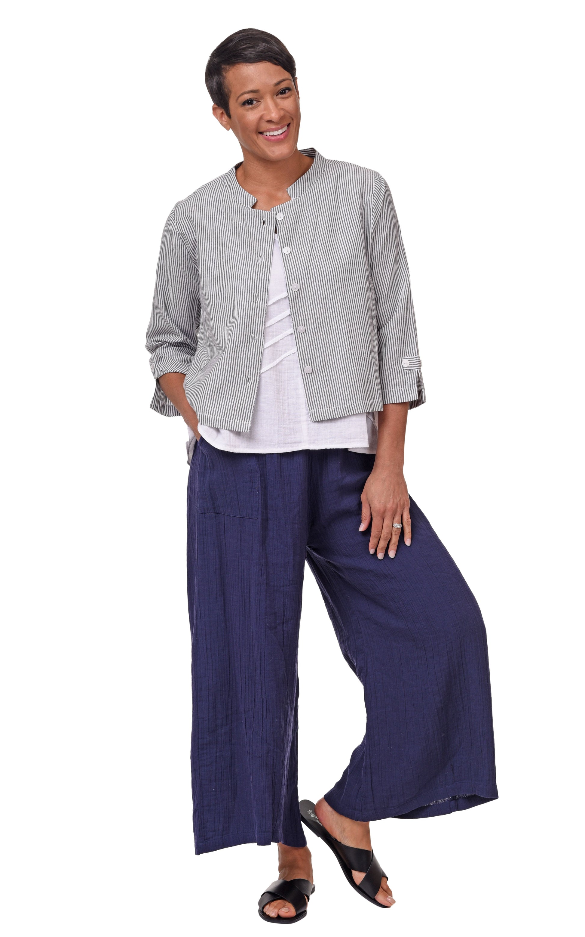 - Outfit 2: Shown with VCG649 Lori in White and VCG115 Palazzo Pant in Navy