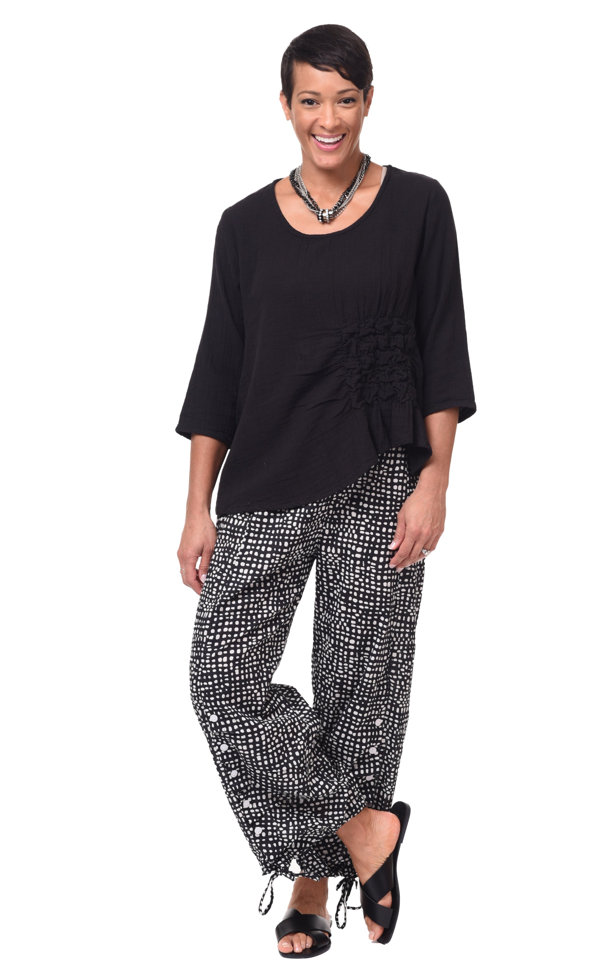 - Outfit 2: Shown with CV21 Scooter Pant in Black Dots
